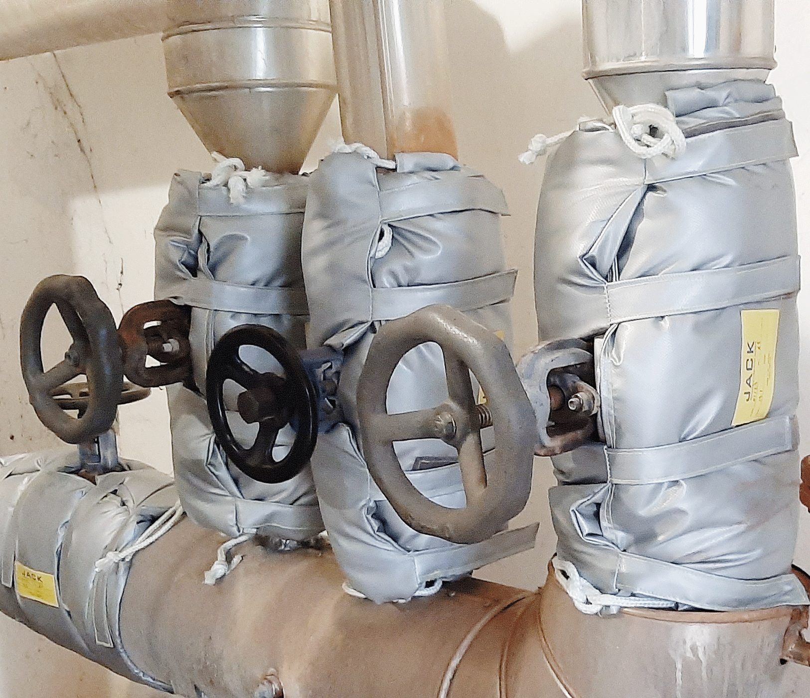 JACK izolacione jakne su izrađene šivenjem tehničkog platna otpornog na visoke temperature. Unutar dva sloja platna se ubacuje izolacioni materijal i zatvara šavom. Jakna se pripadajućim čičak trakama pričvršćuje na ventil ili drugi komad opreme, čime se postiže jednostavno, lako i brzo skidanje i ponovno vraćanje neograničen broj puta. JACK izolacione jakne su otporne na kiseline, baze i UV zrake, a životni vek im je isti kao i klasičnoj izolaciji.