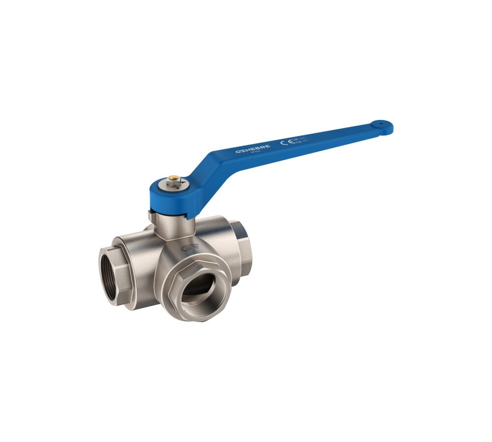 Kuglasta slavina sa polugom PN25, trodelna. U „L“ i „T“ izvedbi. Temperatura 120C. Aluminijumska poluga. Prema direktivi 97/23/EC.