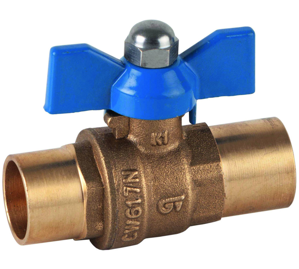 Kuglasta slavina sa krajevima za lemljenje sa leptir ručkom (pun protok) PN 16